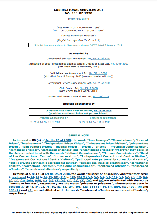 JICS is an independent oversight body tasked with overseeing the correctional operations of the Department of Correctional Services and protecting the rights of all incarcerated persons. JICS reports to the Parliamentary Portfolio Committee on Correctional Services and the Minister of Correctional Services.